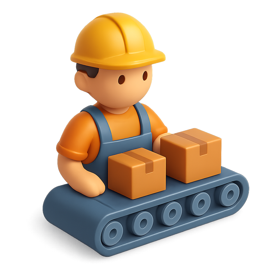 3D Assembly Worker Icon on Conveyor Belt