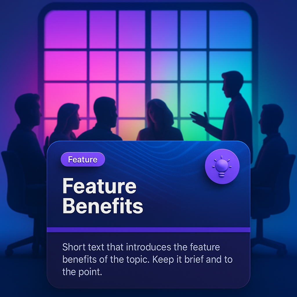 /Collection: /by davooda/Type: PNG/The image features silhouettes of people in a meeting room, with a vibrant, colorful window casting light behind them. A prominent feature block highlights discussion points.