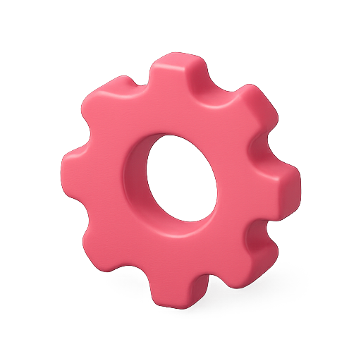 /Collection: /by davooda/Type: PNG/A three-dimensional stylized pink gear icon, ideal for representing technology, settings, or engineering concepts in digital design. Its smooth surface and modern shape make it visually appealing.