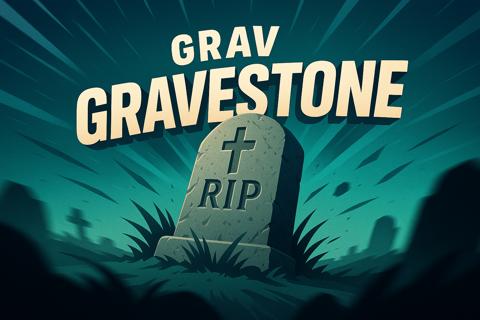 Dynamic Gravestone Illustration with Bold Typography