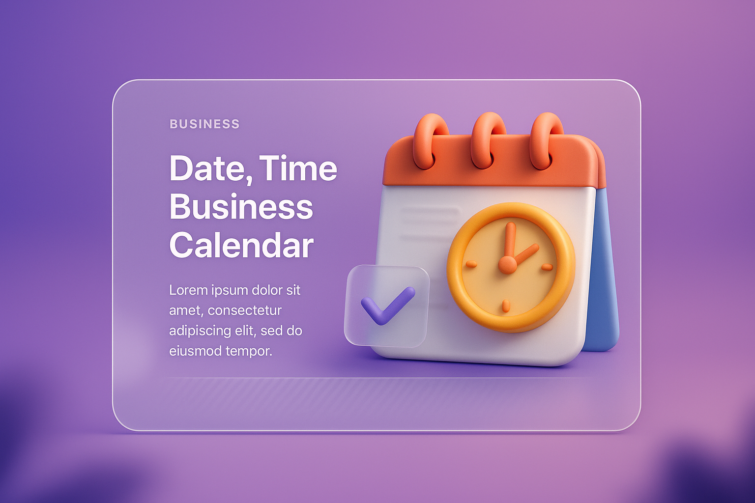 A visually engaging 3D illustration of a business calendar featuring vibrant colors and a sleek design. The foreground includes a checkmark and time indicators, enhancing its thematic relevance.
