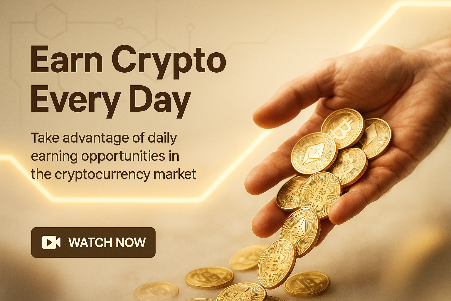 Engaging promotional banner showcasing cryptocurrency coins to highlight daily earning opportunities, designed for digital marketing in finance.