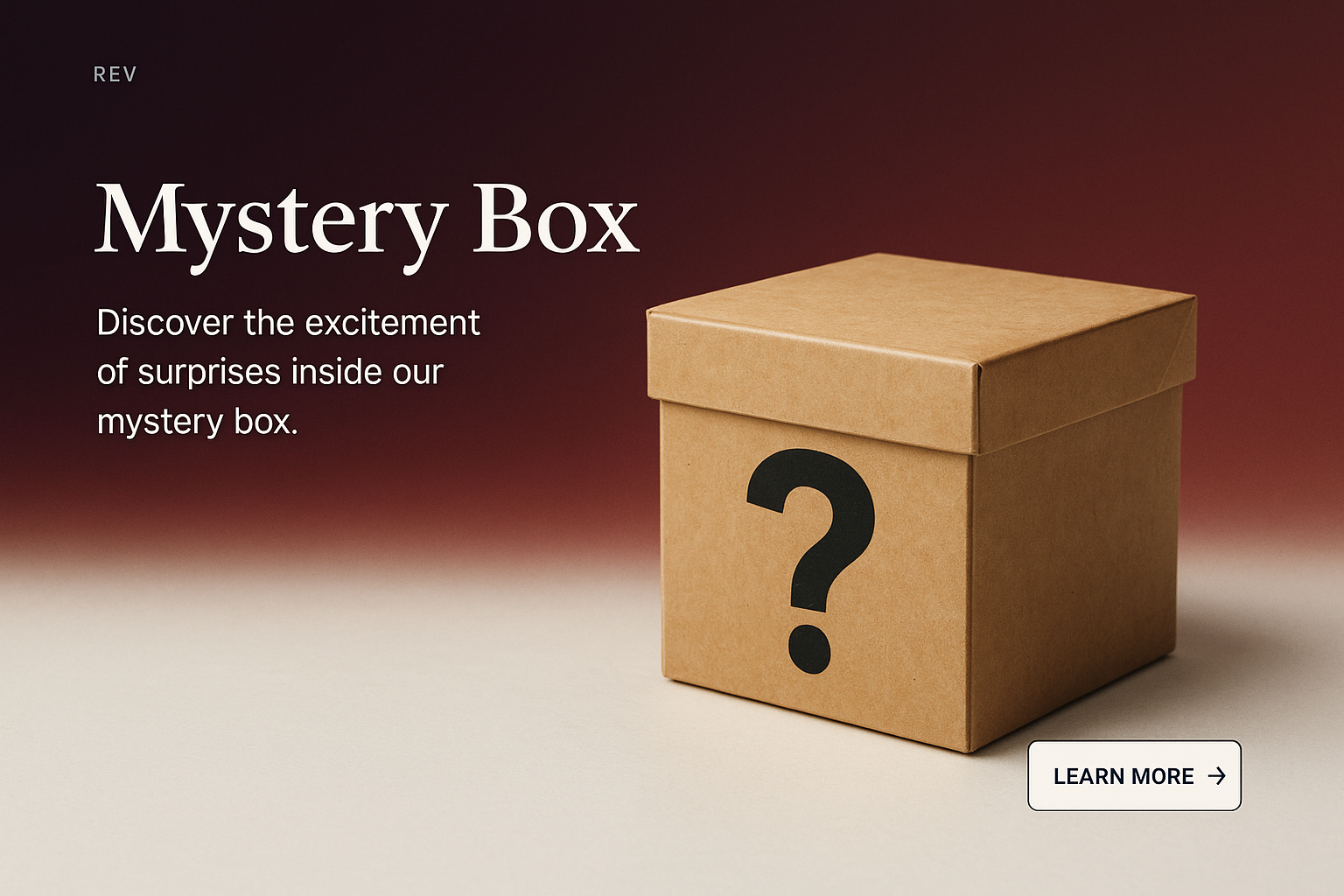 A stylish illustration of a mystery box with a question mark, set against a gradient background. The design is ideal for web use with a clear action button.