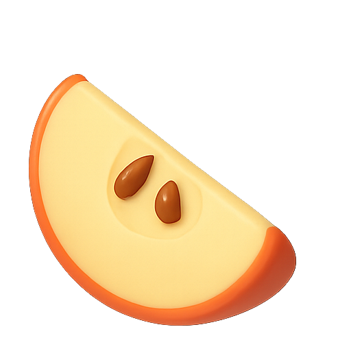 A vibrant, stylized graphic of an apple slice featuring a minimalist design, ideal for use in food-related applications, branding or educational materials.