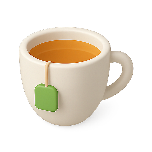A minimalist illustration of a tea cup filled with tea, featuring a simple tea bag. This graphic is ideal for food and beverage marketing, blogs, or wellness-related content.