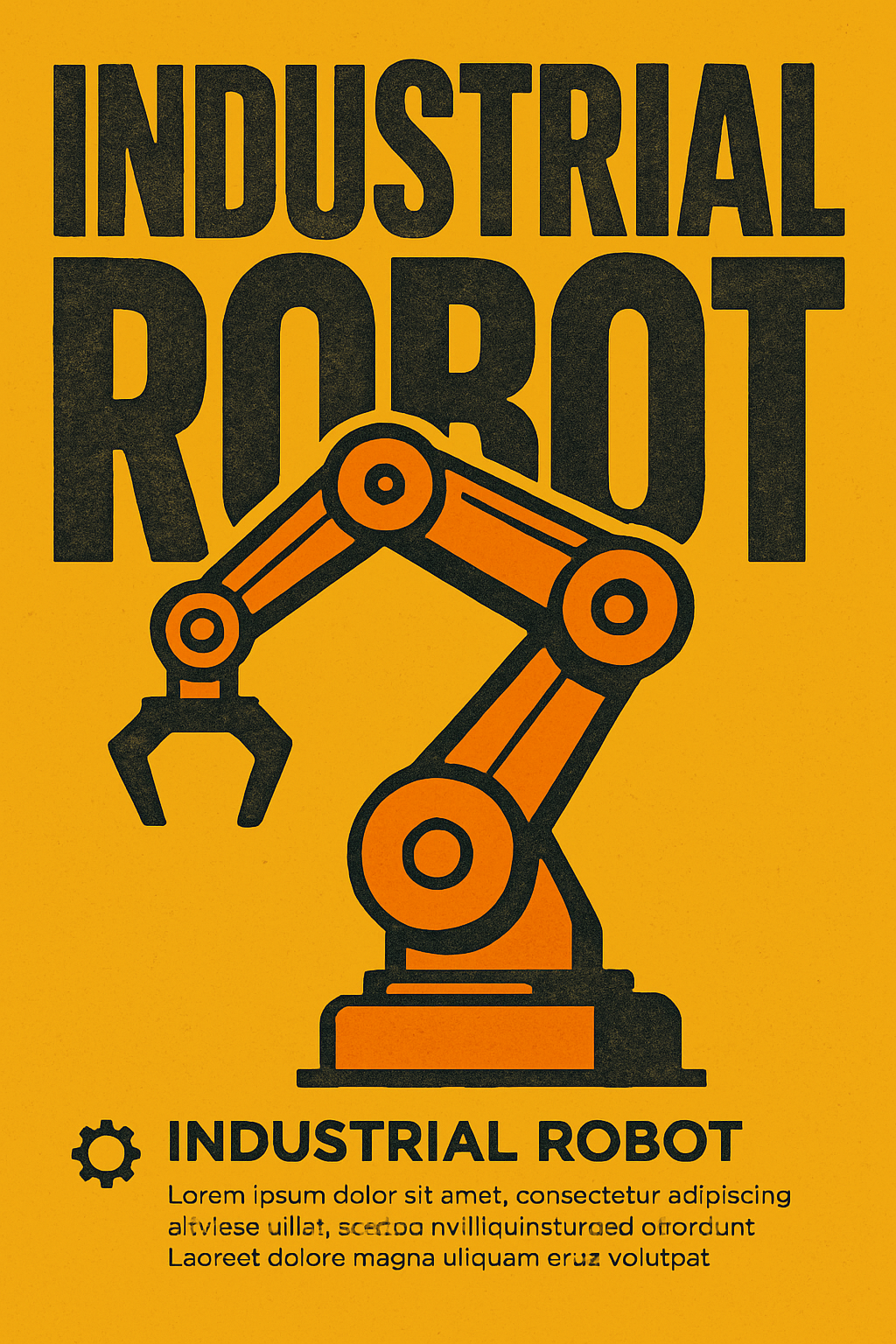 Stylized graphic featuring an industrial robot arm on a vibrant orange background, ideal for tech-related presentations or promotional materials.