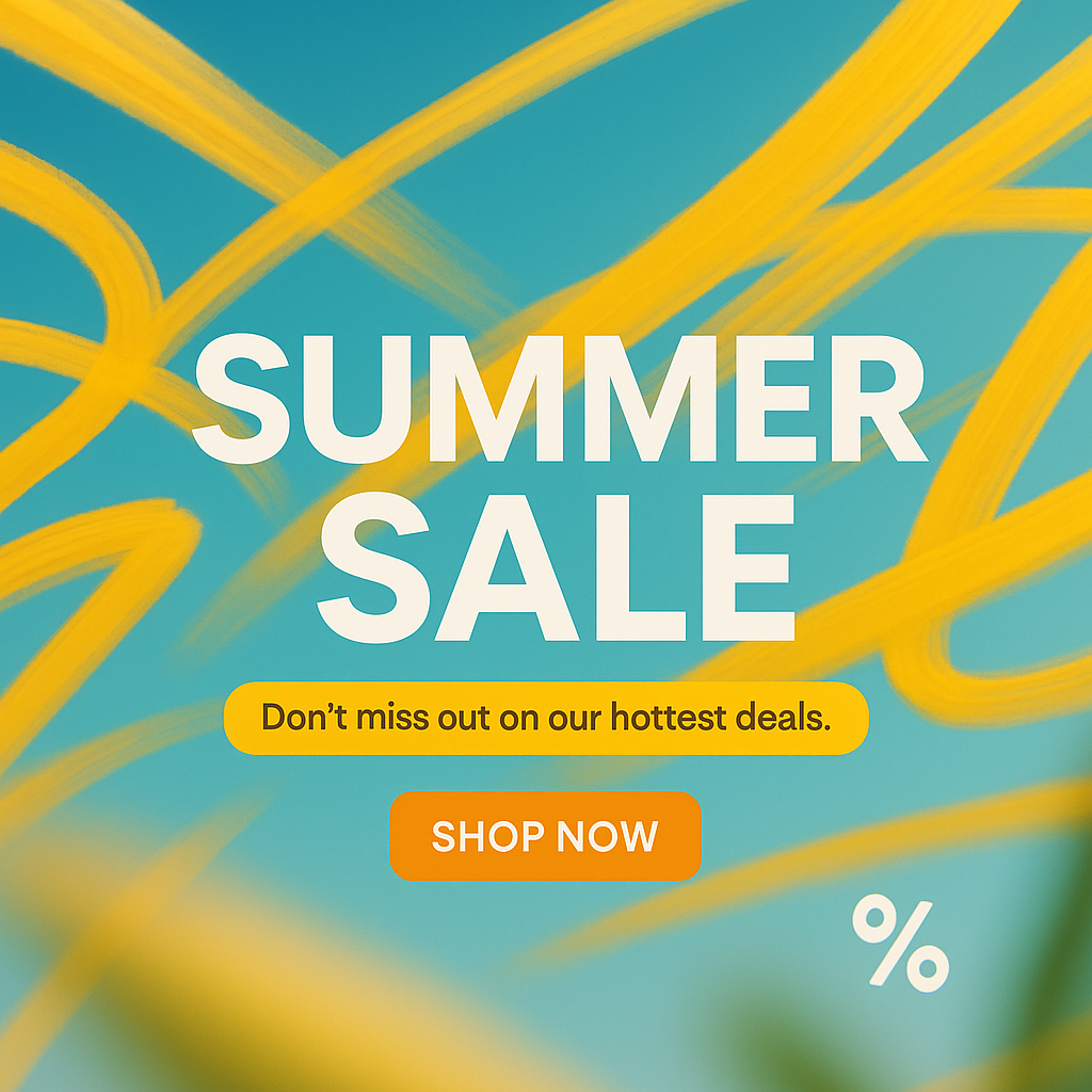 /Collection: /by davooda/Type: PNG/An abstract summer-themed background featuring bright yellow hand-drawn lines against a smooth gradient backdrop. Ideal for promotional content, the design emphasizes a summer sale with engaging text elements.