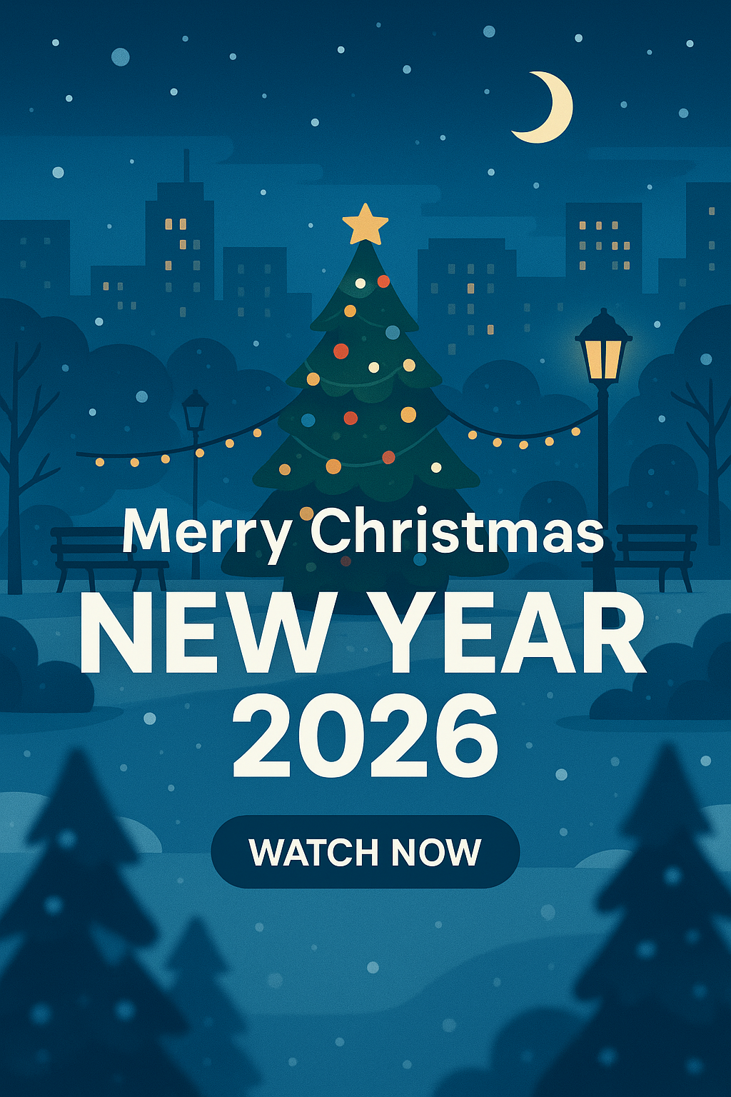 Festive Holiday Graphic Featuring Christmas Tree and New Year Celebration