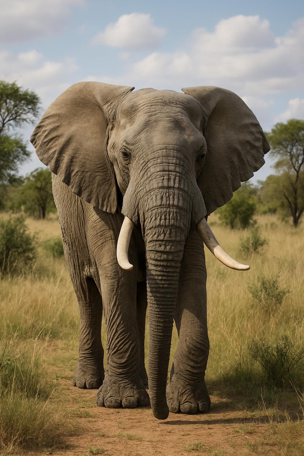 A striking photograph of an elephant majestically walking through its natural environment, showcasing the beauty of wildlife and conservation efforts. Ideal for educational or wildlife-themed projects.