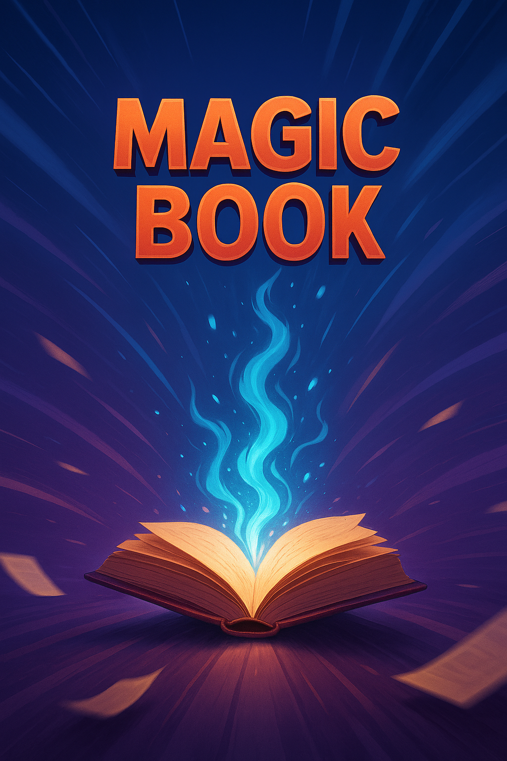 /Collection: /by davooda/Type: PNG/A vibrant illustration of an open magic book emitting ethereal flames. The dynamic lines radiate from the center, creating a captivating visual effect against a smooth gradient background.