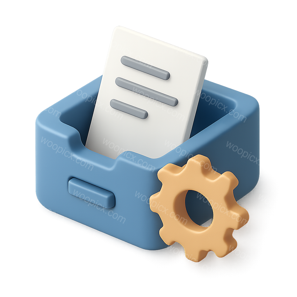3D Gear and Clock Icon with Document Representation