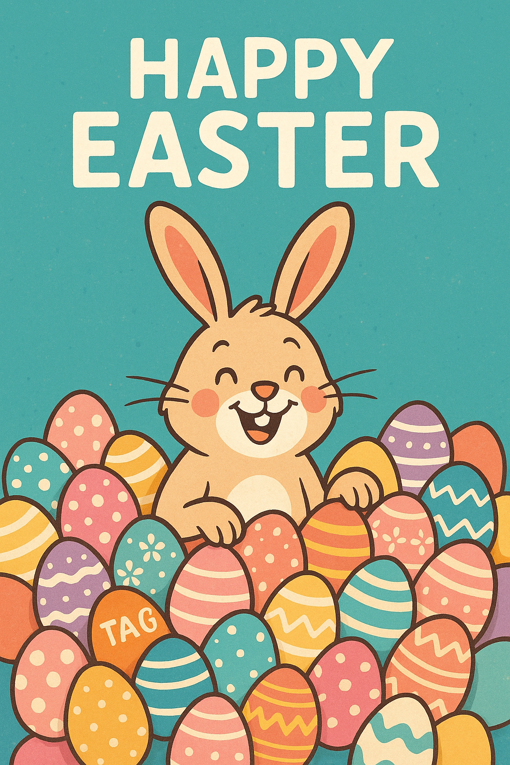Cheerful Easter Celebration Graphic with Bunny and Eggs