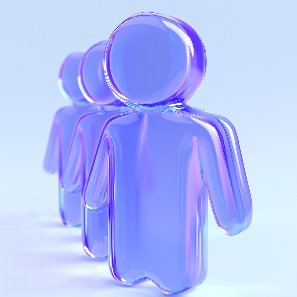 A modern graphic design featuring three stylized, translucent figures in soft pastel colors, ideal for depicting community or teamwork concepts in digital media.