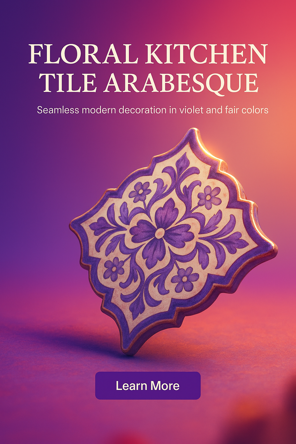 A vibrant promotional graphic showcasing a floral kitchen tile in violet hues. Ideal for home decor marketing and interior design inspiration.