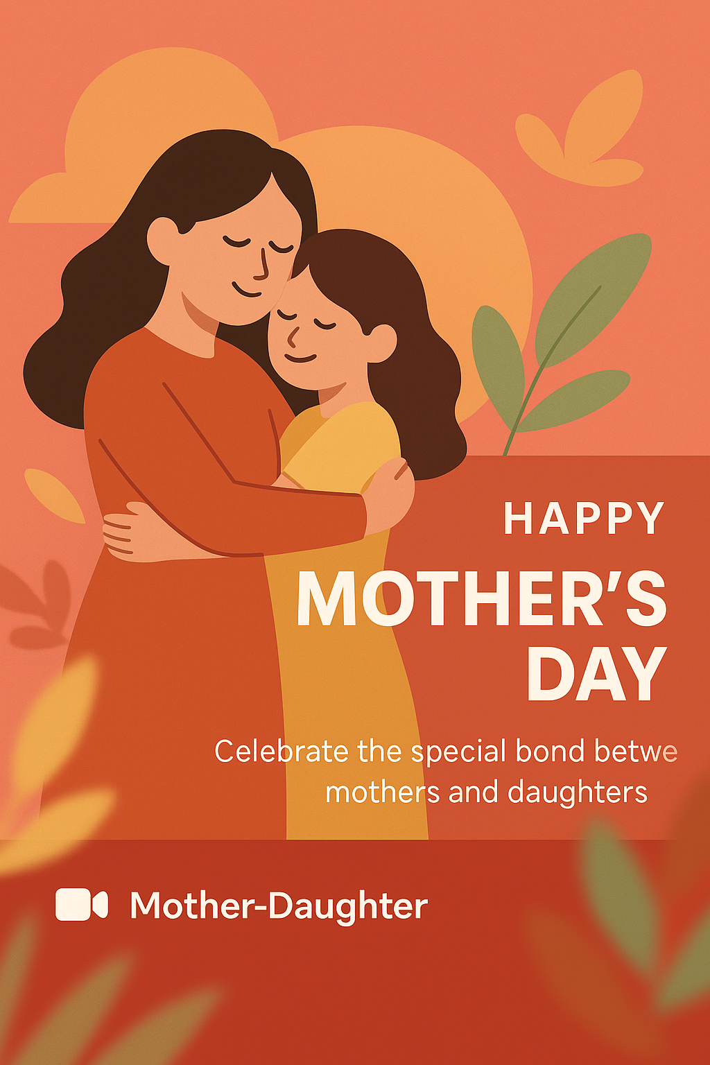 A vibrant and warm illustration celebrating Mother's Day, featuring a mother and daughter embracing. Ideal for social media posts or greeting cards.