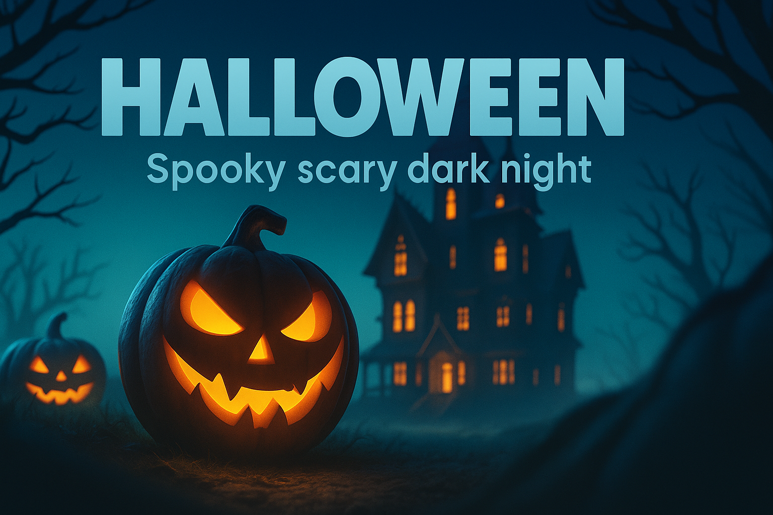 Spooky Halloween Landscape with Pumpkins and Haunted House