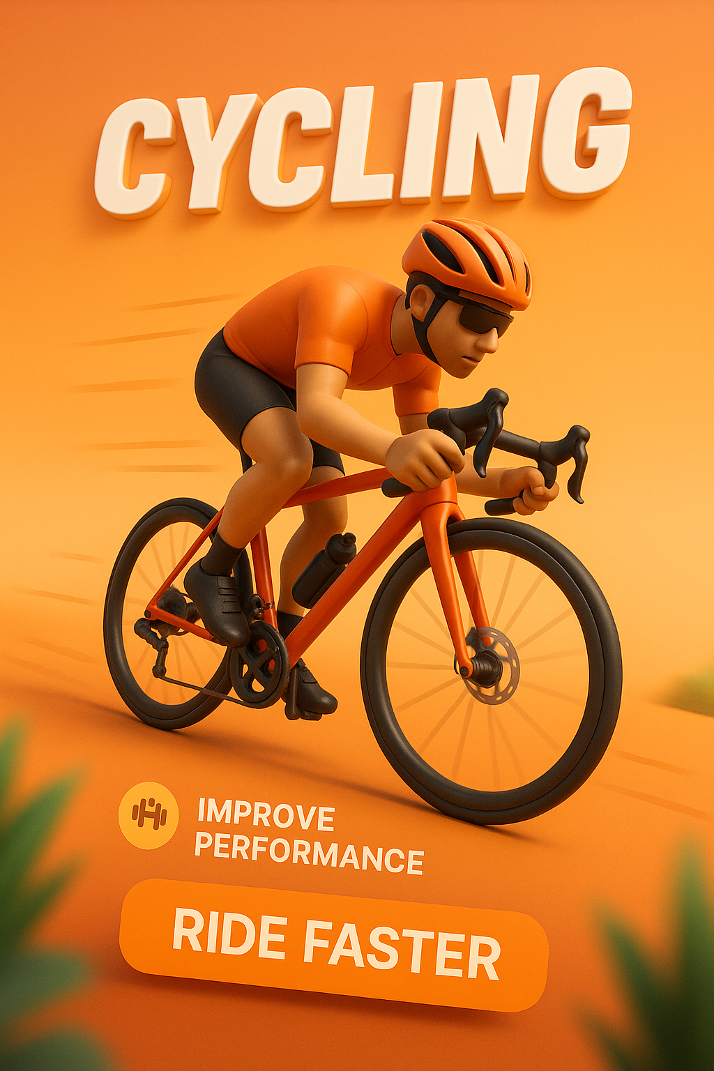 This vibrant promotional graphic features a 3D cyclist in action, designed to inspire and motivate cycling enthusiasts. Ideal for fitness campaigns and social media posts.