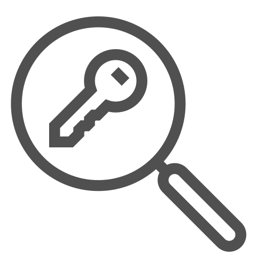 outline simple icon: digital marketing, keyword search, search engine optimization, seo magnifying glass, seo strategy