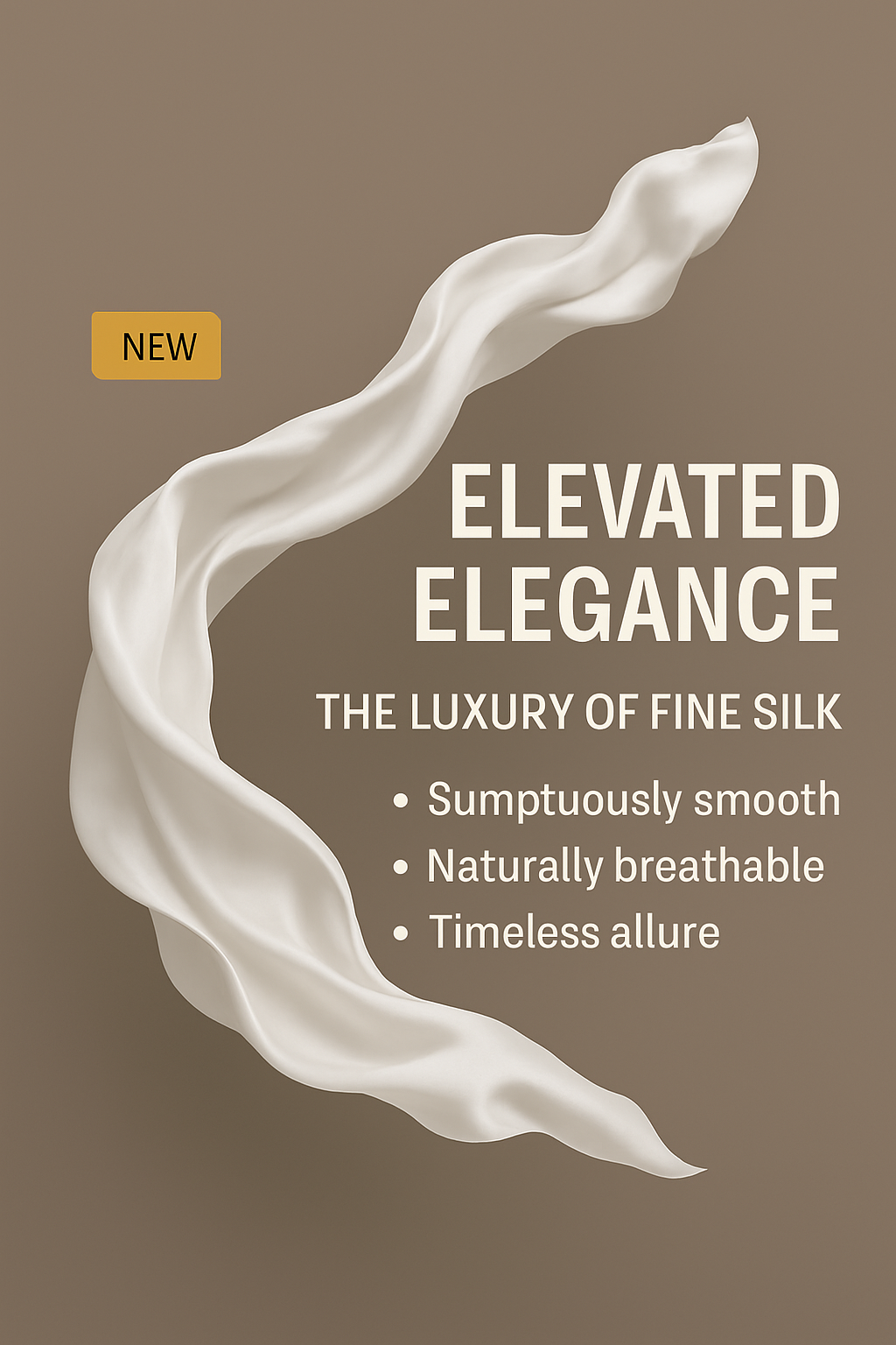 Stylish promotional graphic featuring smooth silk fabric on a neutral background, ideal for marketing luxury apparel or home textiles.