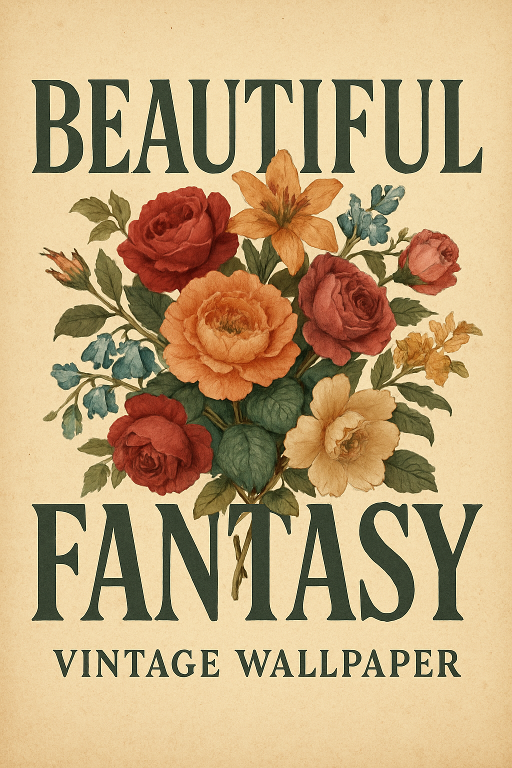/Collection: /by davooda/Type: PNG/Charming vintage wallpaper design featuring a bouquet of roses and lilies, complemented by elegant typography. Ideal for home decor inspiration or retro-themed projects.