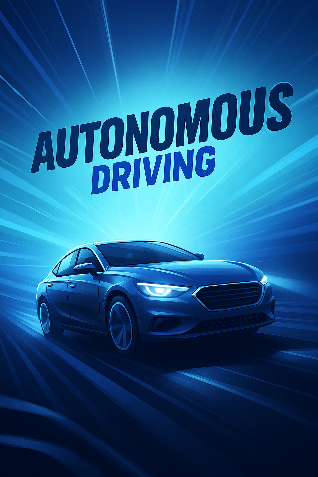 /Collection: /by davooda/Type: PNG/A striking illustration showcasing a sleek car in motion, emphasizing the concept of autonomous driving. The dynamic background features rays of light, enhancing the sense of speed and innovation.
