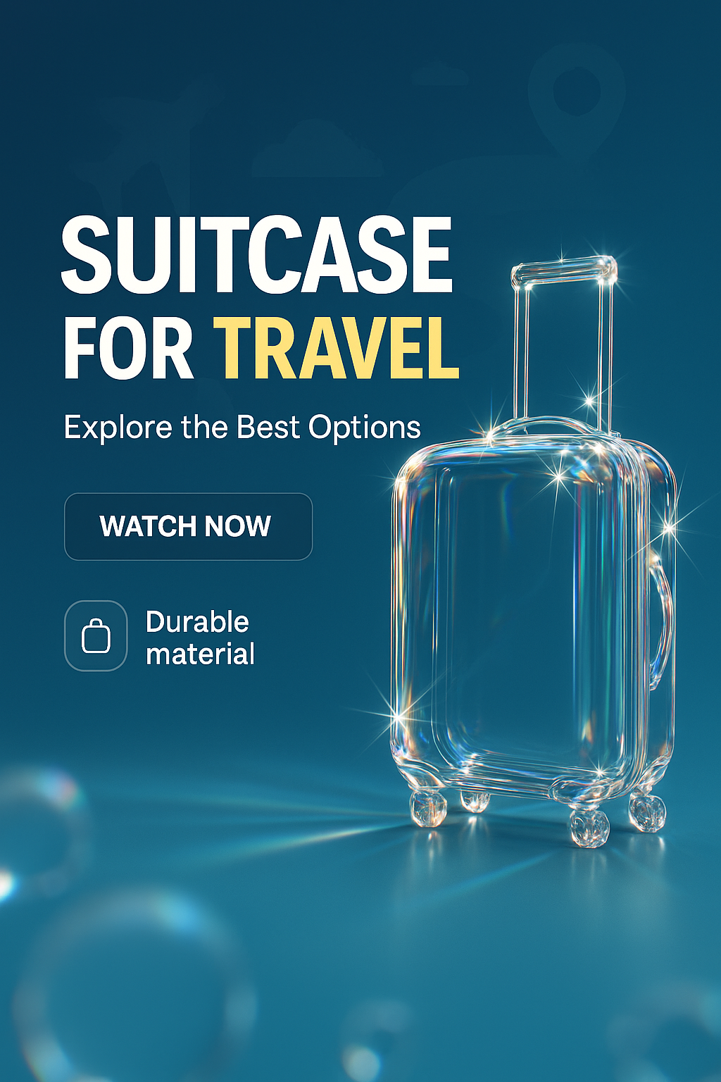 Modern promotional graphic showcasing a stylized suitcase design, emphasizing travel and durability. Ideal for e-commerce or travel-related marketing campaigns.