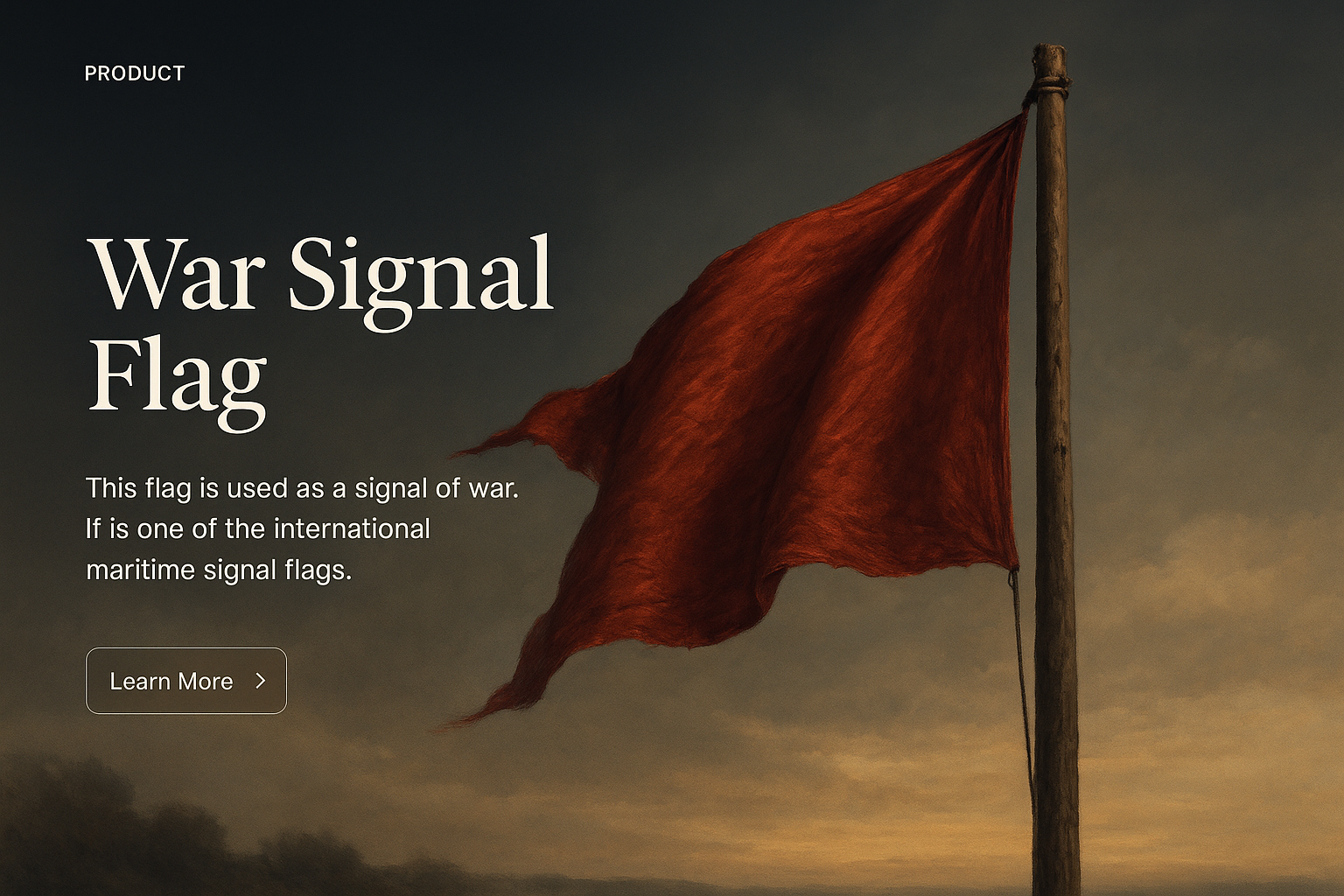 A striking illustration of a war signal flag, depicted in rich colors with a gradient background. This design emphasizes realism, suitable for a web page layout.