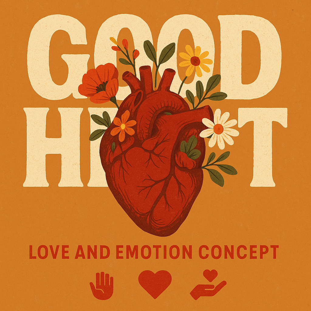 A vibrant illustration featuring a stylized heart surrounded by flowers, symbolizing love and emotion. Ideal for creative projects and emotional wellness themes.