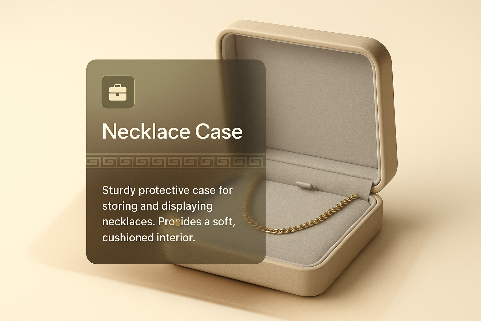 /Collection: /by davooda/Type: PNG/A beautifully designed 3D illustration of a necklace case featuring a soft, cushioned interior. The case is elegantly presented with a translucent overlay for text.