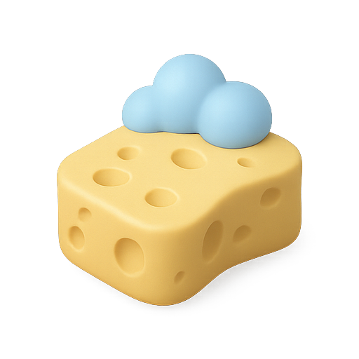 A whimsical and colorful illustration of a cheese block topped with two light blue clouds, perfect for playful branding or food-related projects.
