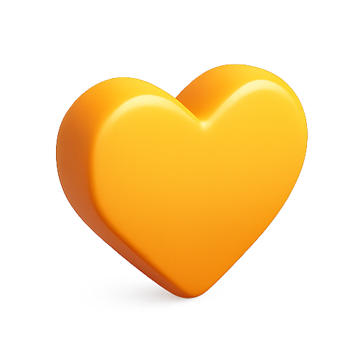 A vibrant 3D glossy yellow heart icon, perfect for use in digital media, social platforms, or applications focusing on love, positivity, and connection.