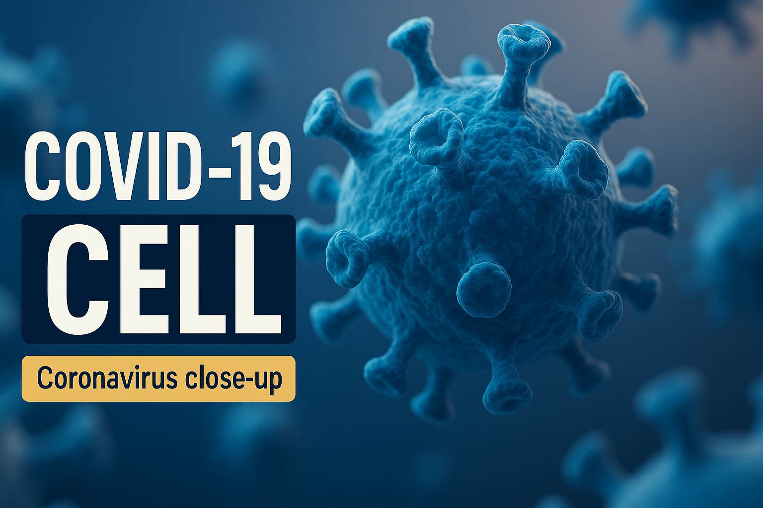 Microscopic Close-up of COVID-19 Cell with Detailed Structure