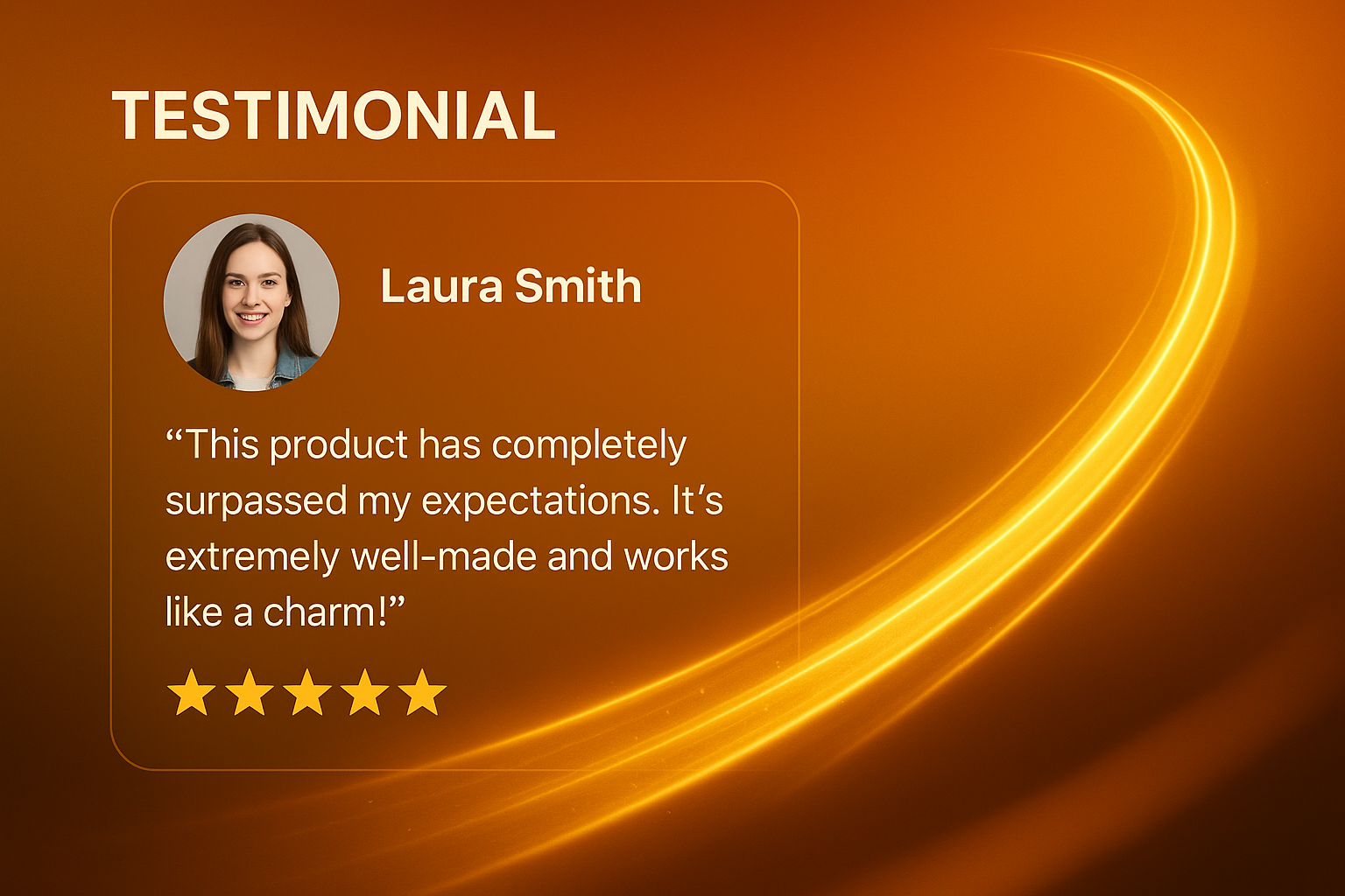 Elegant Testimonial Design with Star Rating and Gold Accents