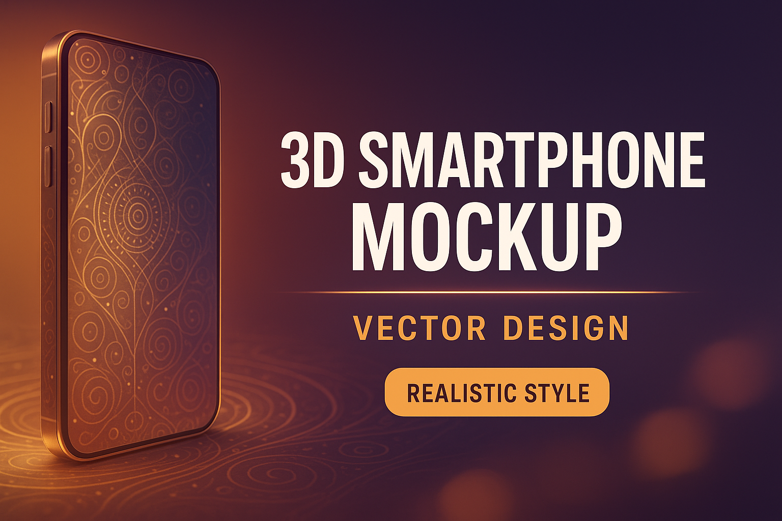 Stylish 3D smartphone mockup featuring intricate vector designs, ideal for showcasing app interfaces or branding in a realistic style. Perfect for digital marketing and design presentations.
