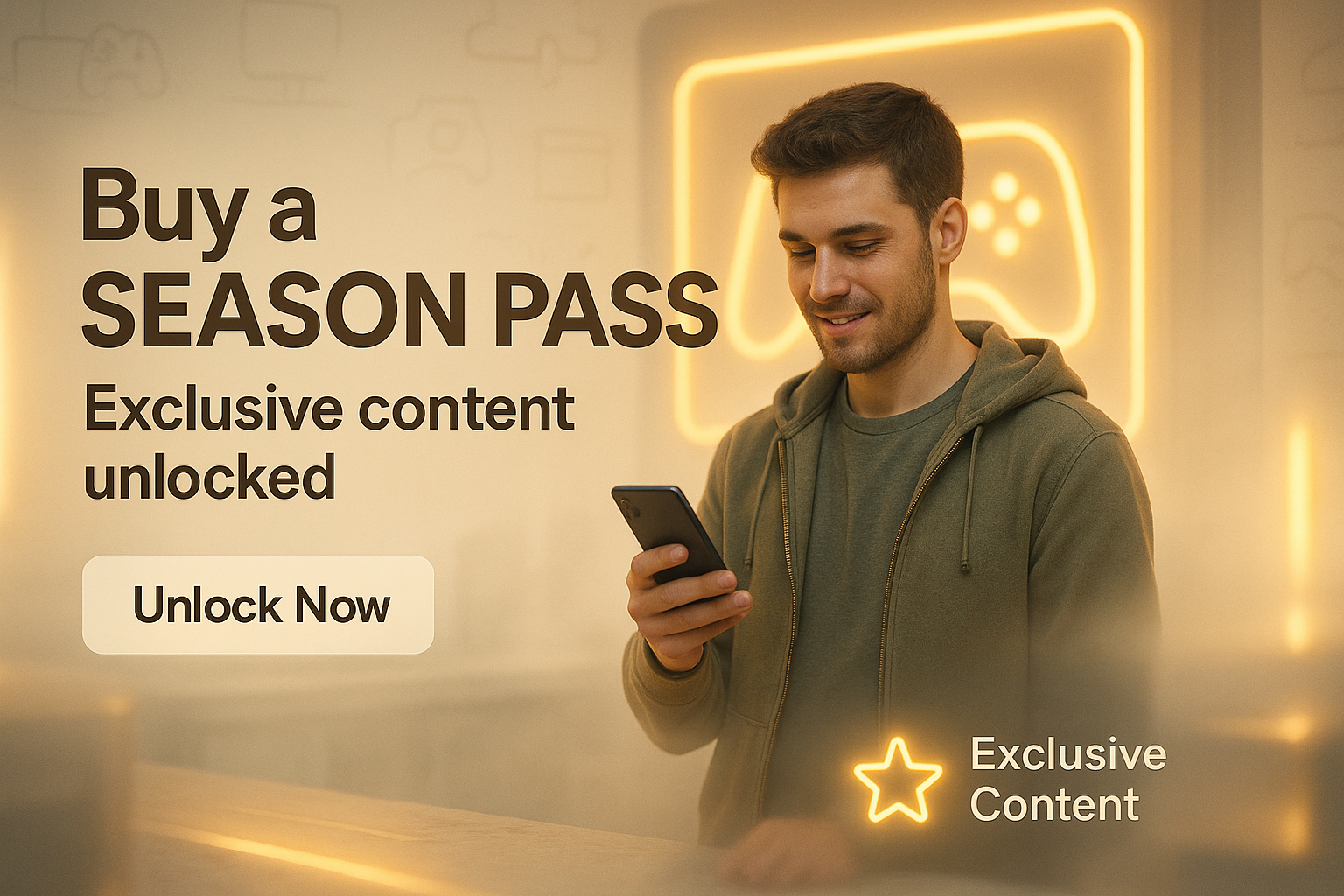 Engaging promotional image encouraging purchase of a season pass with a modern design, targeting gamers interested in exclusive content.