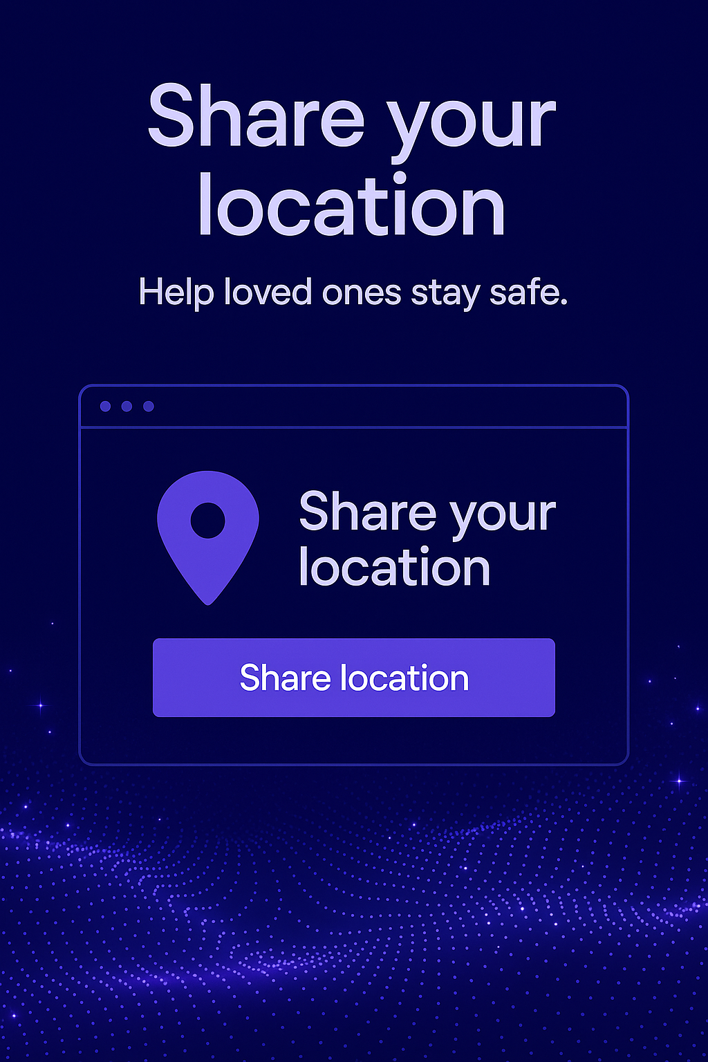 Modern promotional graphic for a location-sharing app, featuring a sleek design with a focus on safety and connectivity, ideal for app marketing.