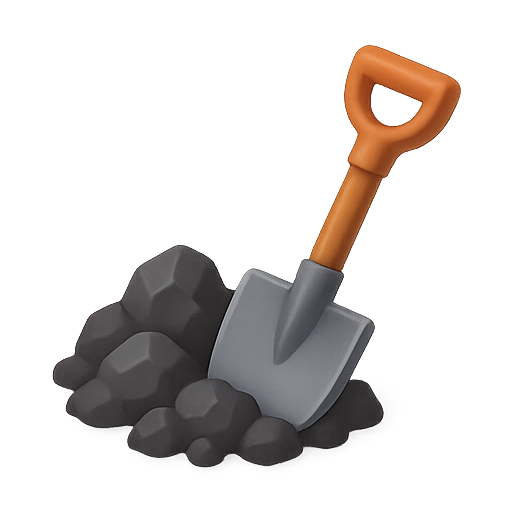 A cartoon-style illustration of a shovel partially buried in a pile of dirt. This graphic is ideal for themes related to construction, gardening, or outdoor activities.