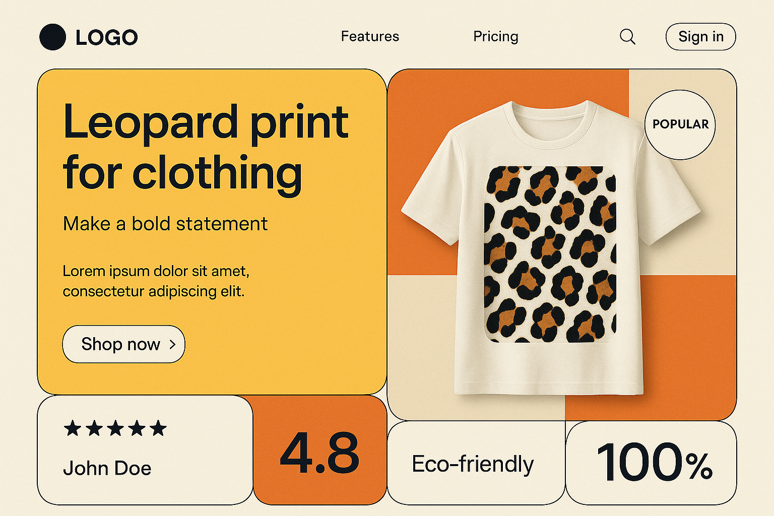 Modern Bento Style Landing Page Design with Leopard Print