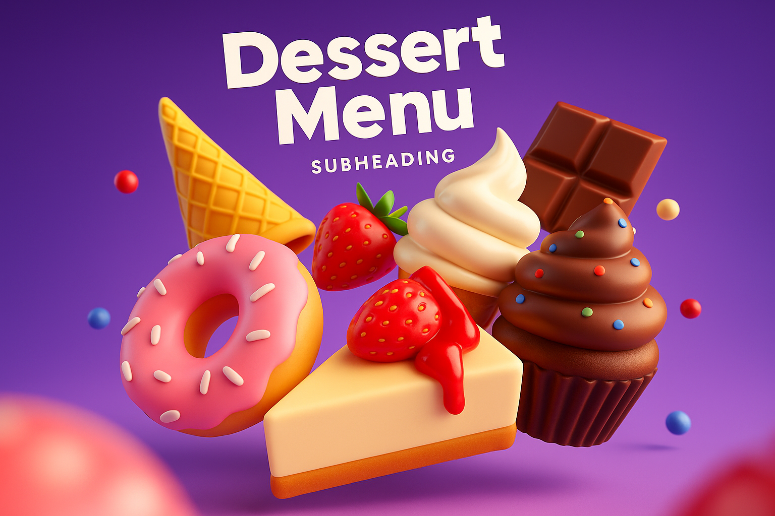 Dynamic 3D Dessert Menu Illustration for Engaging Presentation