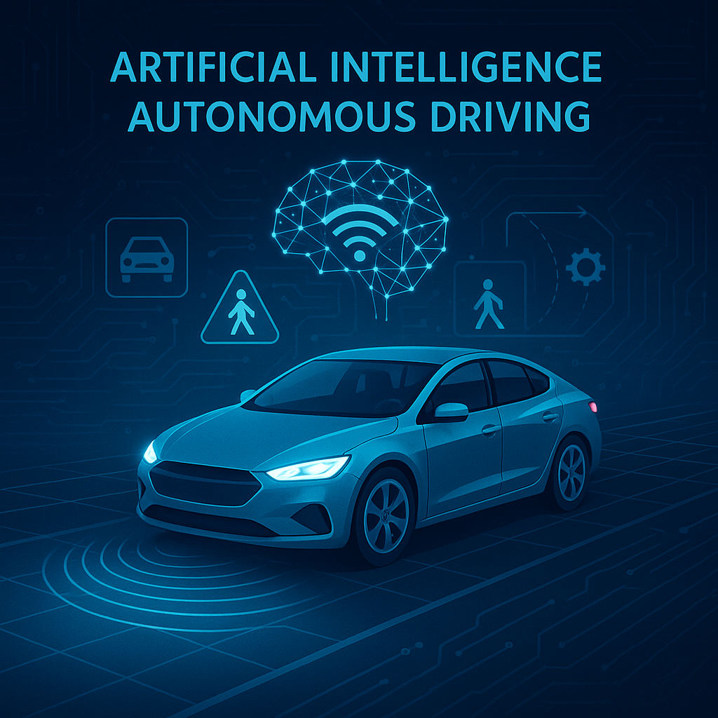 Futuristic Automotive Technology Graphic Featuring AI and Autonomous Driving