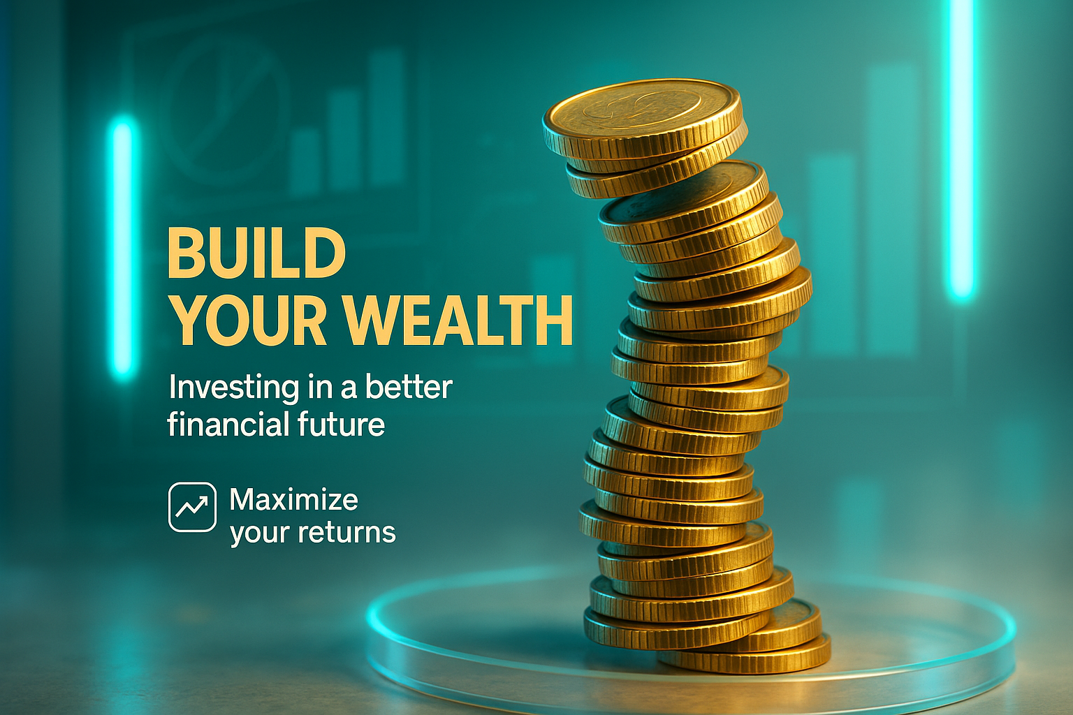 Financial Growth Promotion Graphic Featuring Stacked Coins