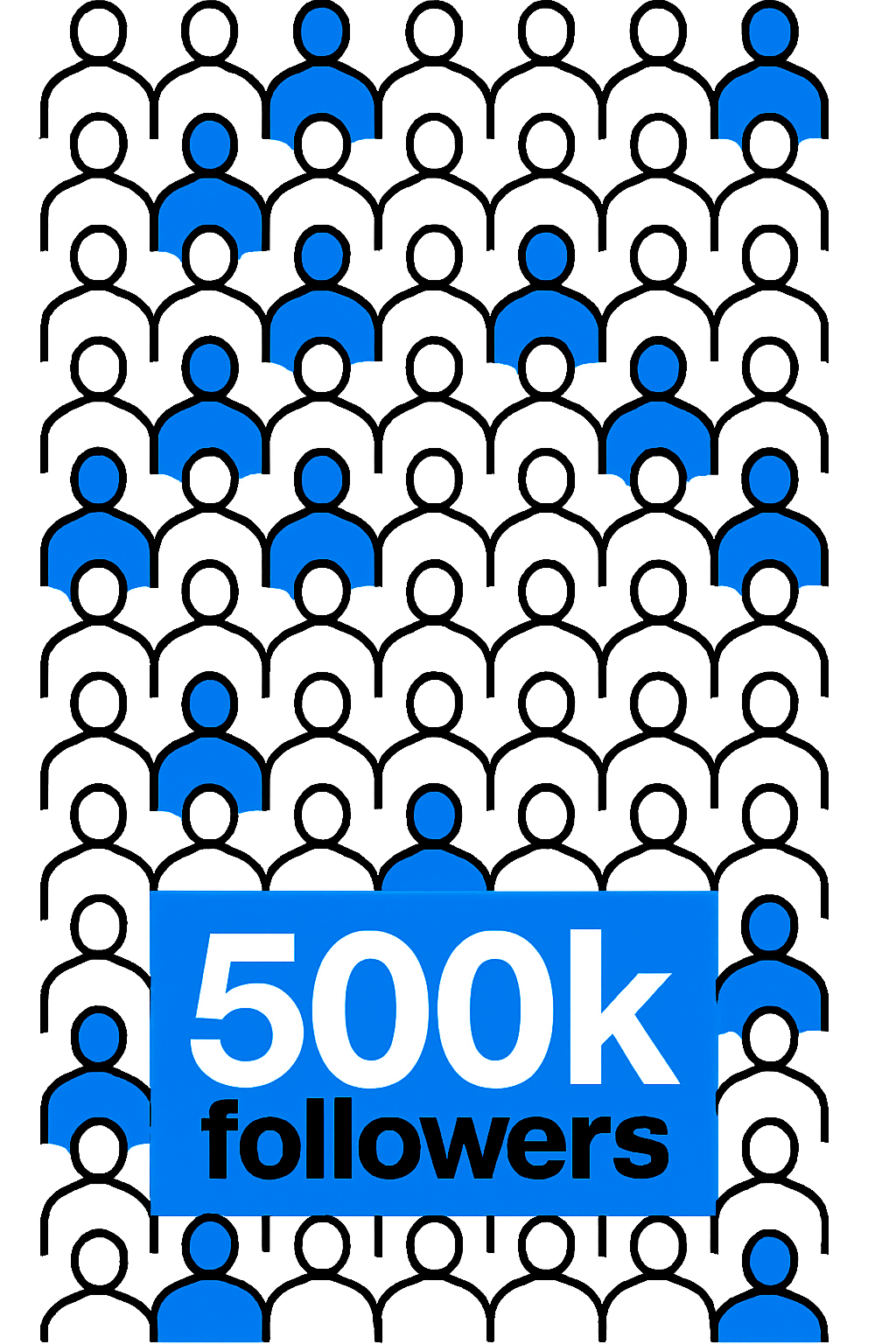 /Collection: /by Sergey Leonov/Type: PNG/Simple yet impactful graphic illustrating a social media milestone of 500k followers, using minimalist design and contrasting colors for emphasis, suitable for digital marketing.