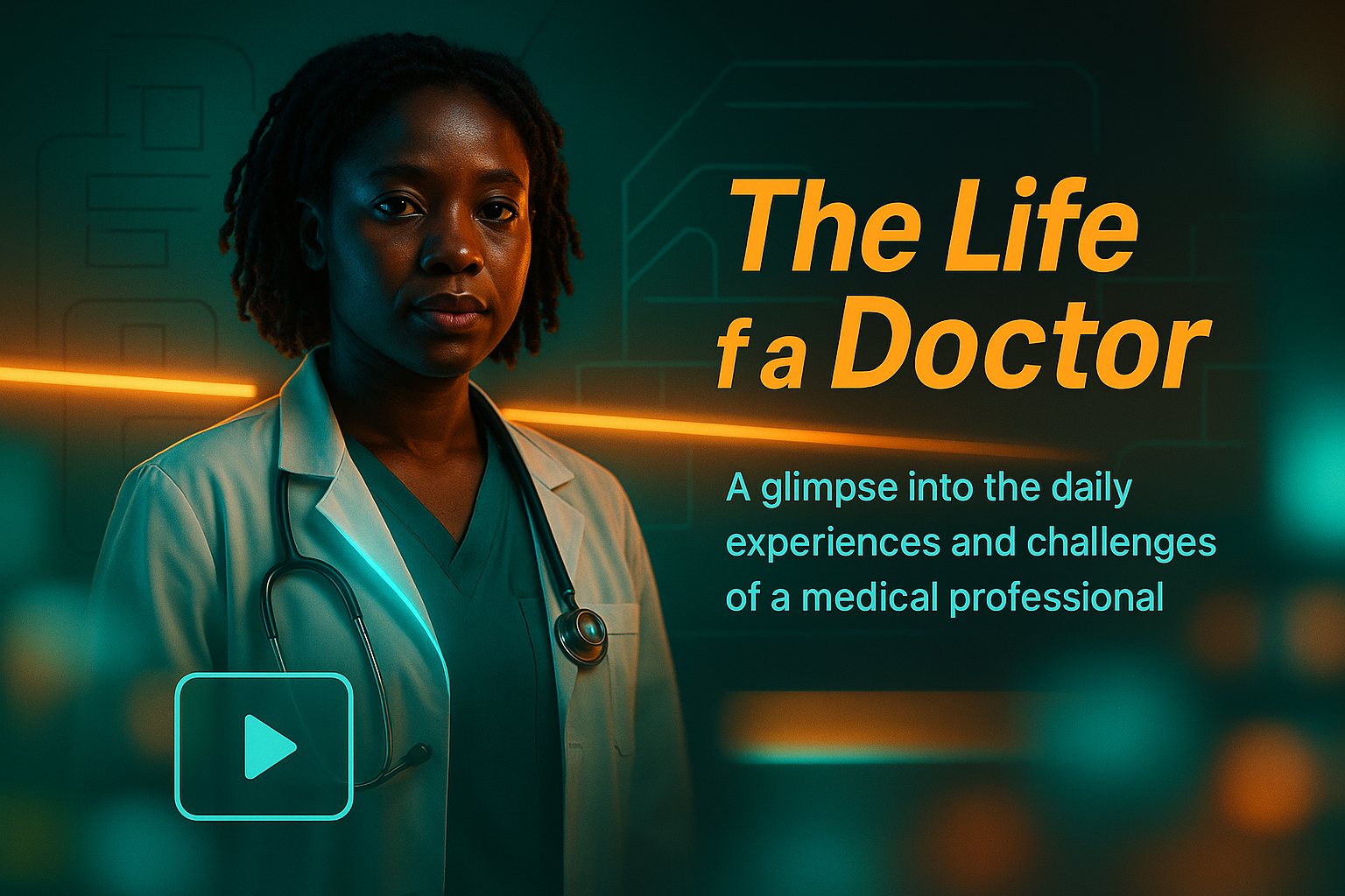 Engaging visual representation highlighting the daily experiences and challenges faced by medical professionals, featuring a healthcare worker in a modern design.