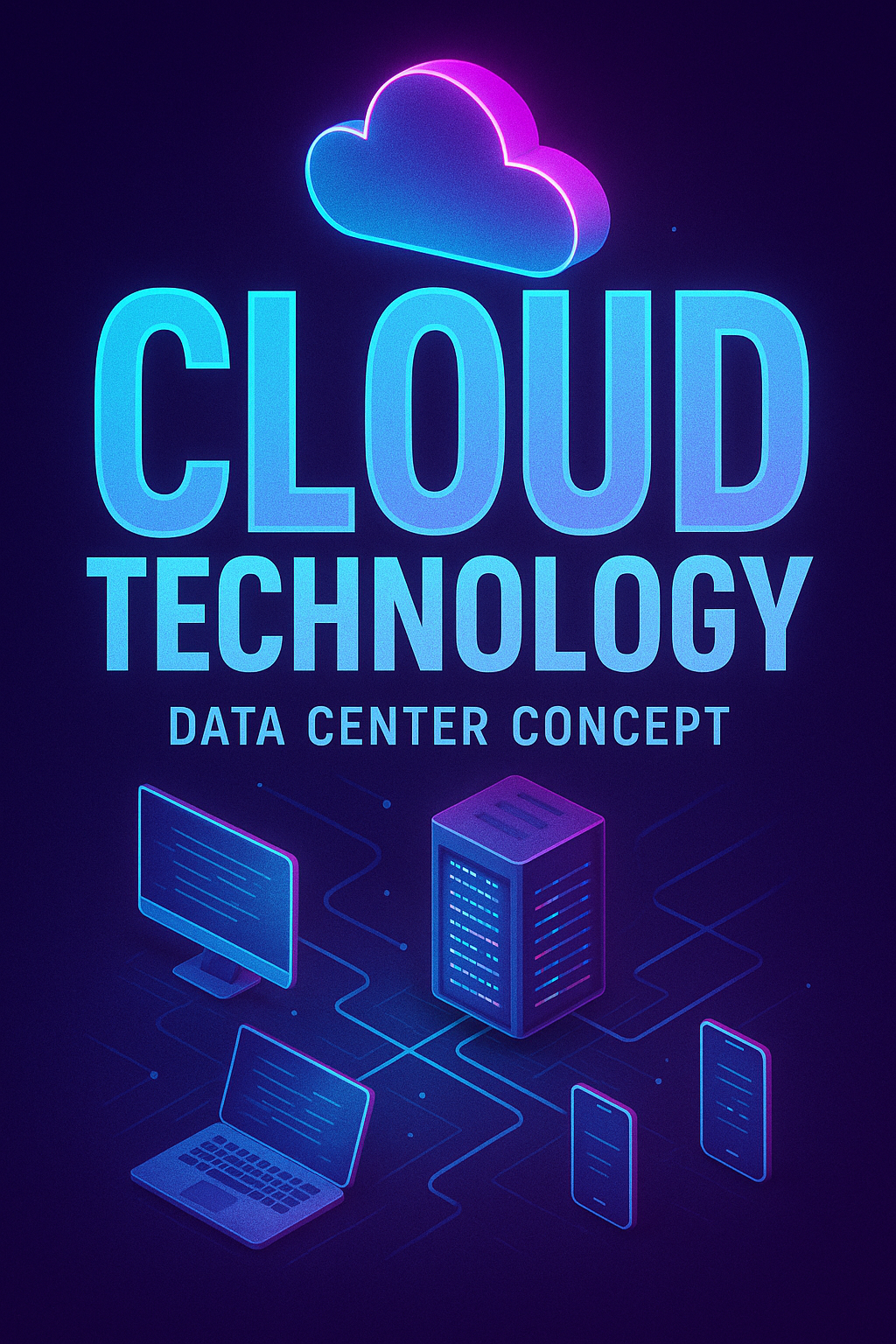 /Collection: /by davooda/Type: PNG/Digital illustration representing cloud technology and data centers, featuring vibrant colors and a sleek design. Ideal for tech-related presentations or marketing materials.