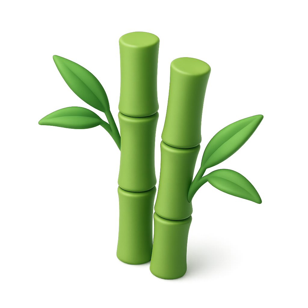 /Collection: /by davooda/Type: PNG/A visually appealing 3D icon of bamboo stalks with vibrant green tones. The design features a three-quarter view and includes leaves, capturing a fresh and natural aesthetic.