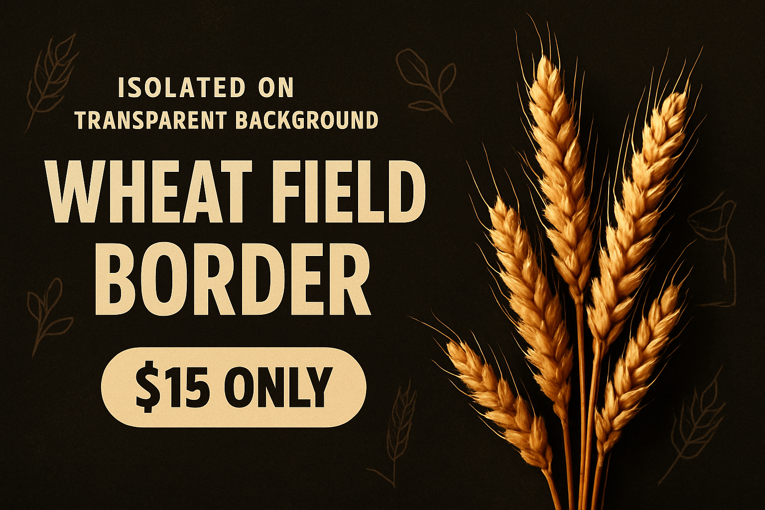 /Collection: /by davooda/Type: PNG/An isolated wheat field border on a textured dark background, featuring bold typography. The design includes a large headline, a price tag, and decorative contour drawings, creating a dynamic advertisement.
