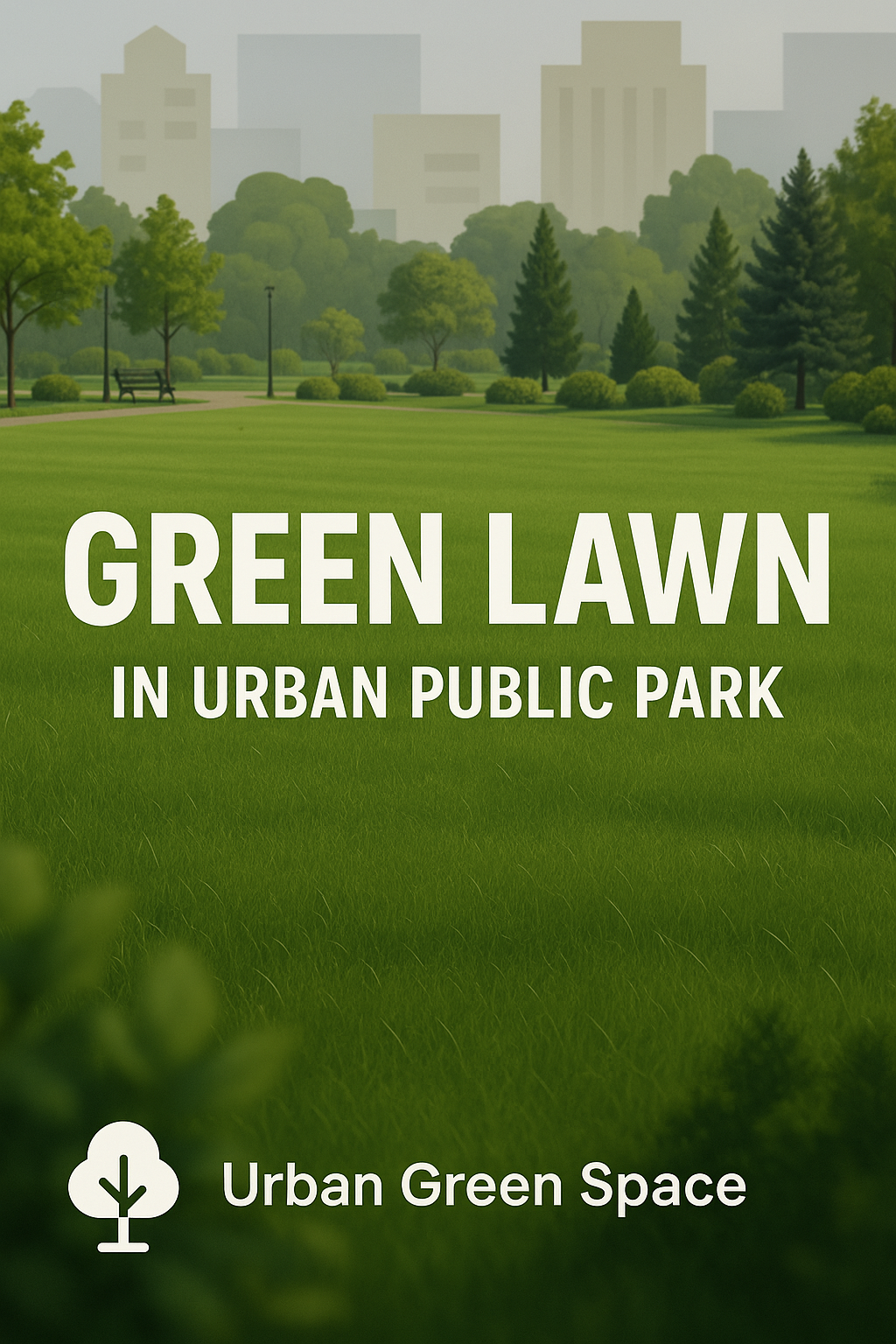 /Collection: /by davooda/Type: PNG/A serene digital illustration depicting a green lawn in an urban public park, emphasizing the importance of green spaces in city environments. Ideal for environmental awareness campaigns.