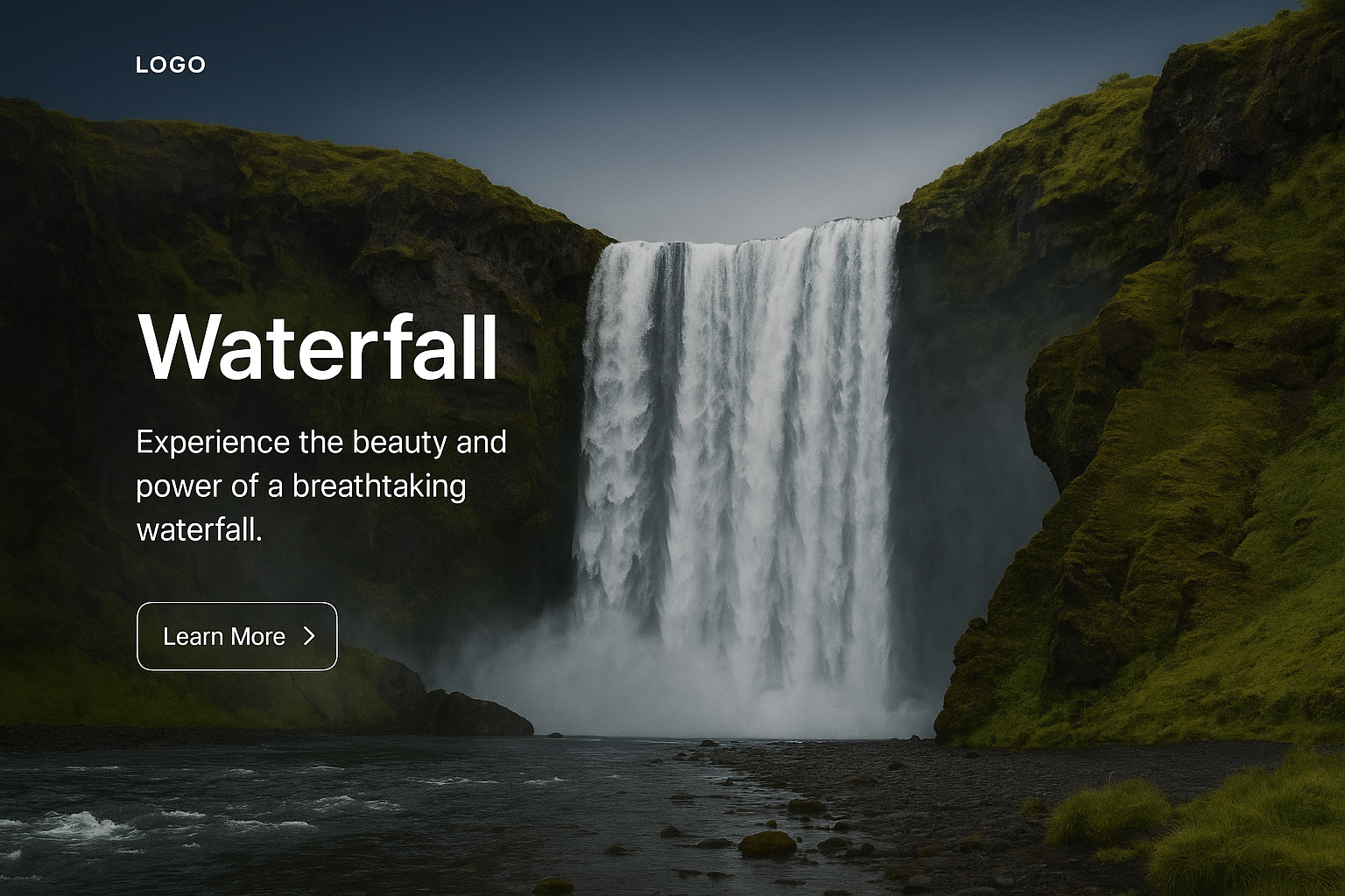 /Collection: /by davooda/Type: PNG/A breathtaking waterfall surrounded by lush greenery, ideal for web design. The image features layered compositions with a gradient background, emphasizing the natural beauty.
