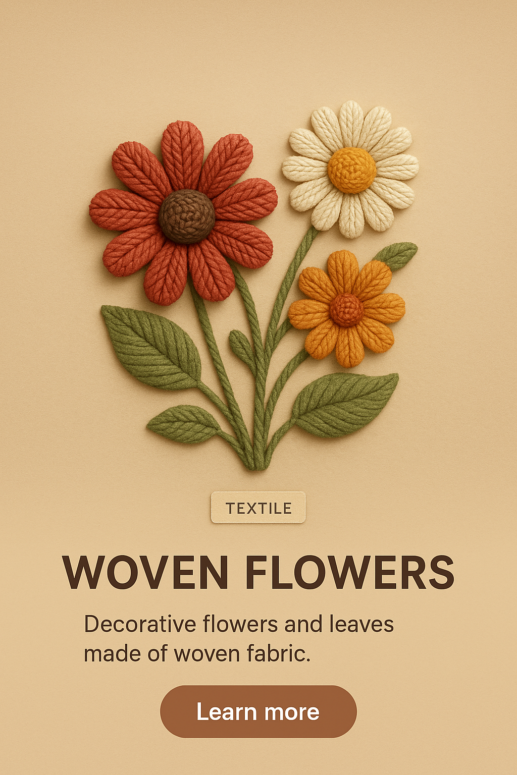 /Collection: /by davooda/Type: PNG/A zoomed-out 3D illustration of decorative woven flowers in vibrant colors, featuring a text block and action button. The background is a smooth gradient, enhancing the visual composition.