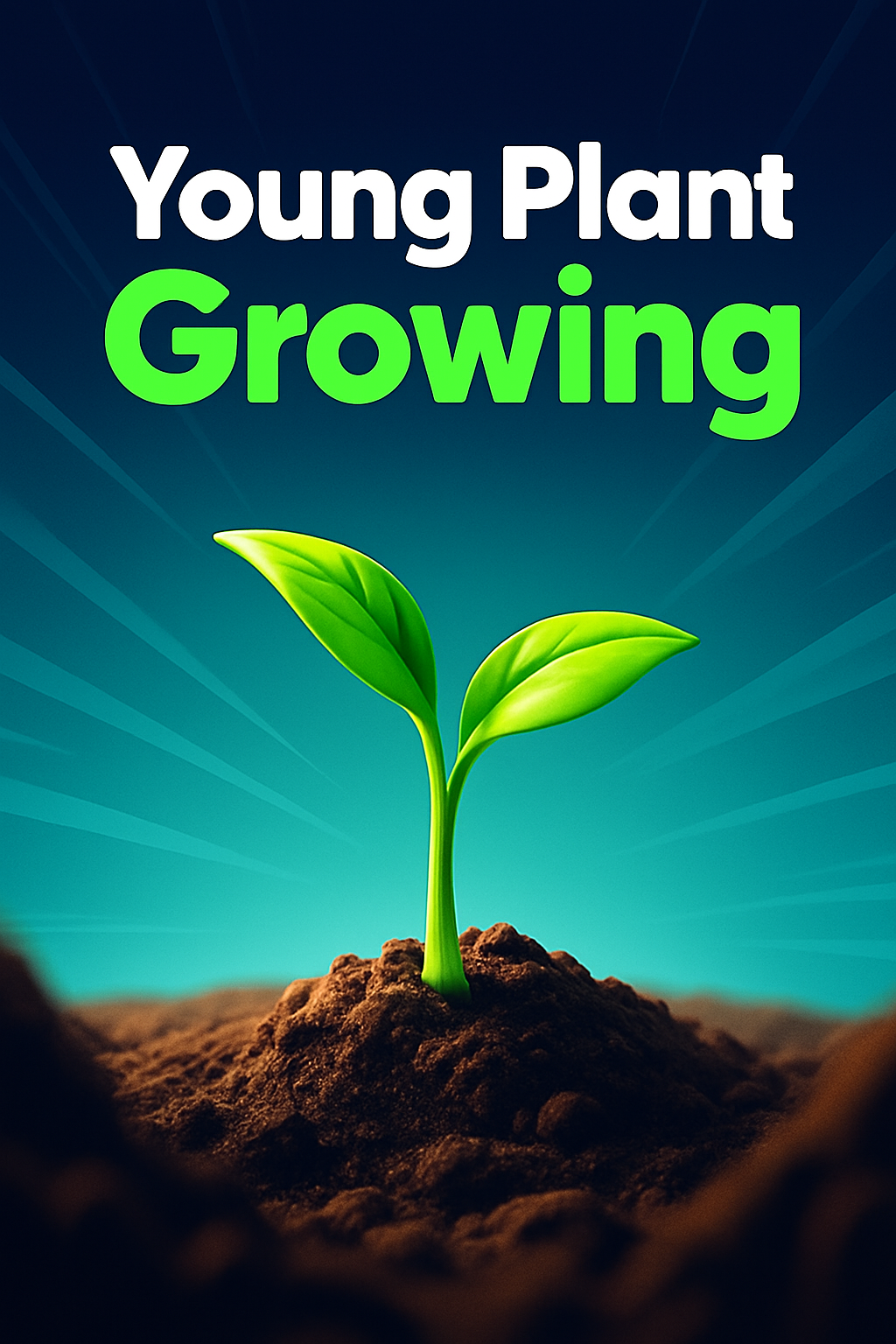 /Collection: /by davooda/Type: PNG/A vibrant young plant emerges from rich soil, reaching towards the morning sunlight. The dynamic composition features a smooth gradient background and emphasizes the plant's growth.